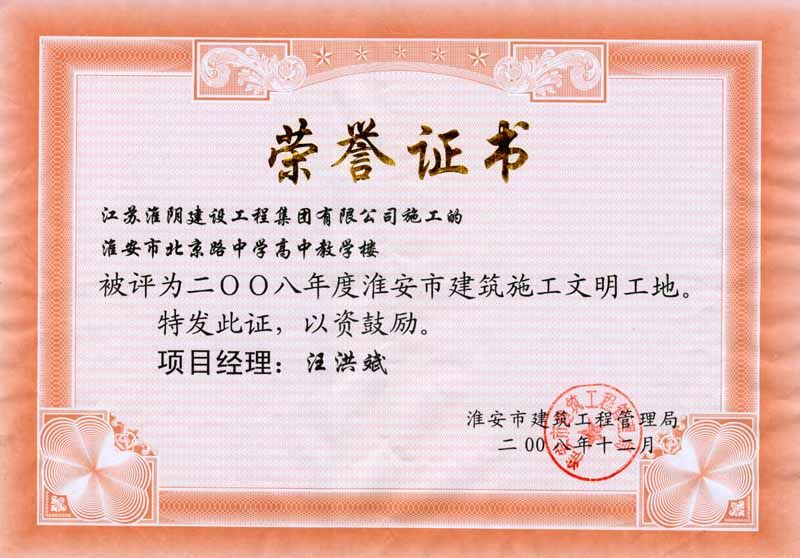 2008年市文明工地淮安市北京路中学高中教学楼-汪洪斌