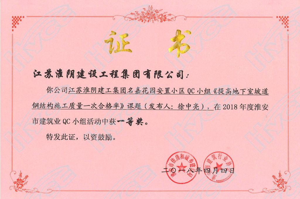 淮安市建筑业QC小组一等奖-名嘉花园