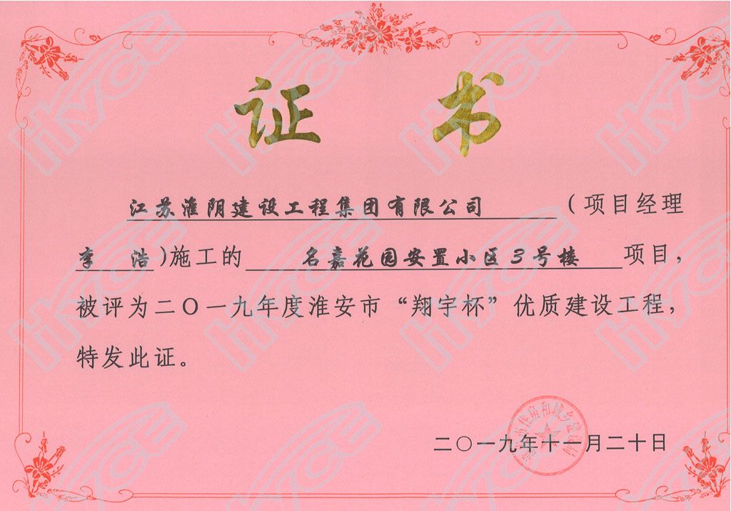 淮安市“翔宇杯”优质建设工程-名嘉花园安置小区3号楼