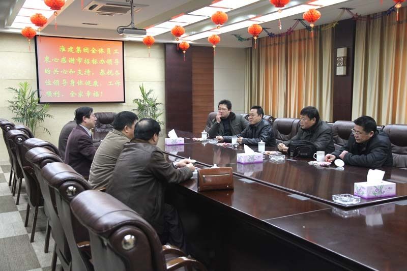 龙年的正月初八上午,市招标办王建中主任、朱长春书记和吴云军、郑琦副主任来集团慰问调研。王建中主任一行首先向集团全体员工致以节日的问候,并祝愿淮建集团在新的一年里事业蒸蒸日上,企业越做越强,并就2011年的招标投标工作和2012年淮建的发展与集团领导进行了交流、探讨。