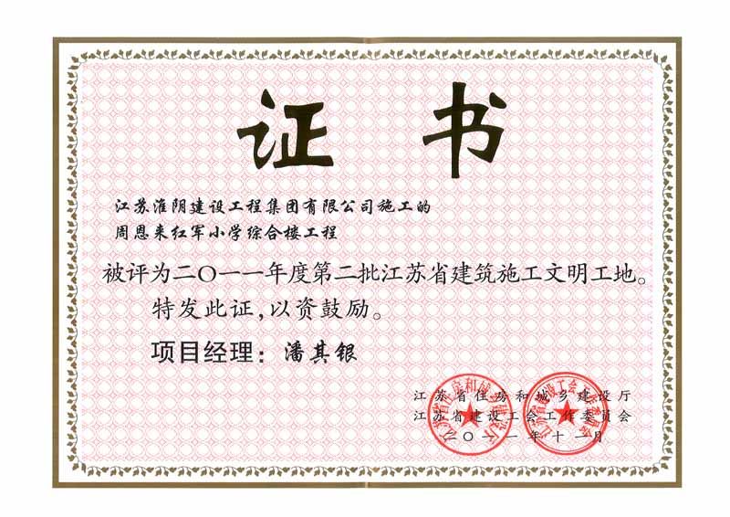 2011年文明工地淮阴工学院北京路小区1#学生宿舍楼接翻建
