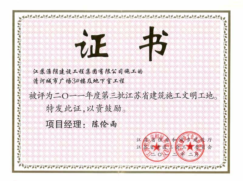 2012年省建筑文明工地清河城市广场3#楼及地下室工程-陈伦