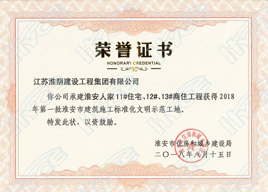 淮安市建筑施工标准化文明示范工地-淮安人家11#住宅、12