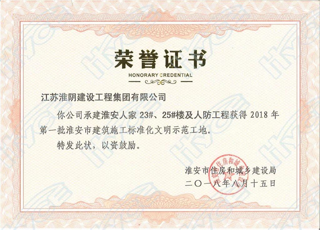 淮安市建筑施工标准化文明示范工地-淮安人家23#、25#楼及