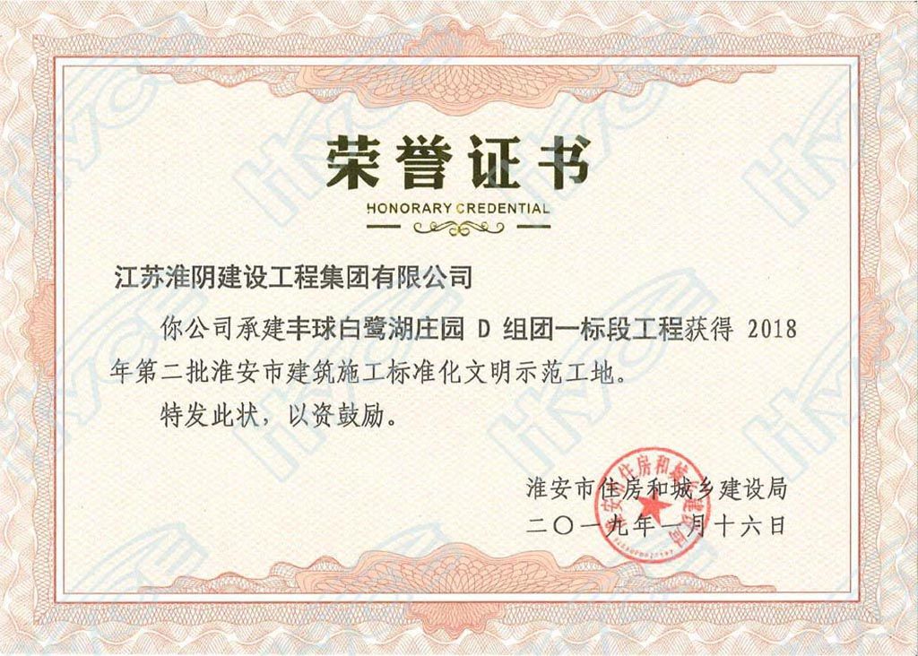 淮安市建筑施工标准化文明示范工地-丰球白鹭湖庄园D组团
