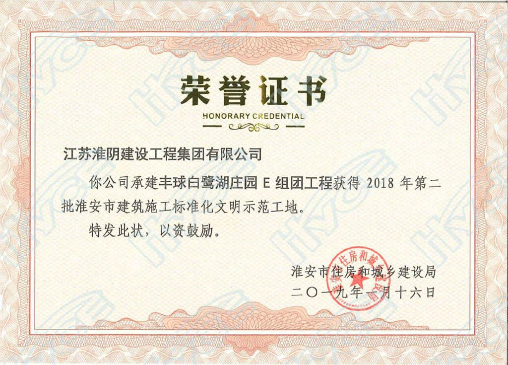 淮安市建筑施工标准化文明示范工地-丰球白鹭湖庄园E组团