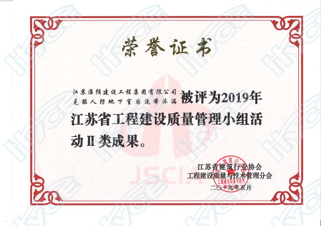 江苏省工程建设质量管理小组活动Ⅱ类成果